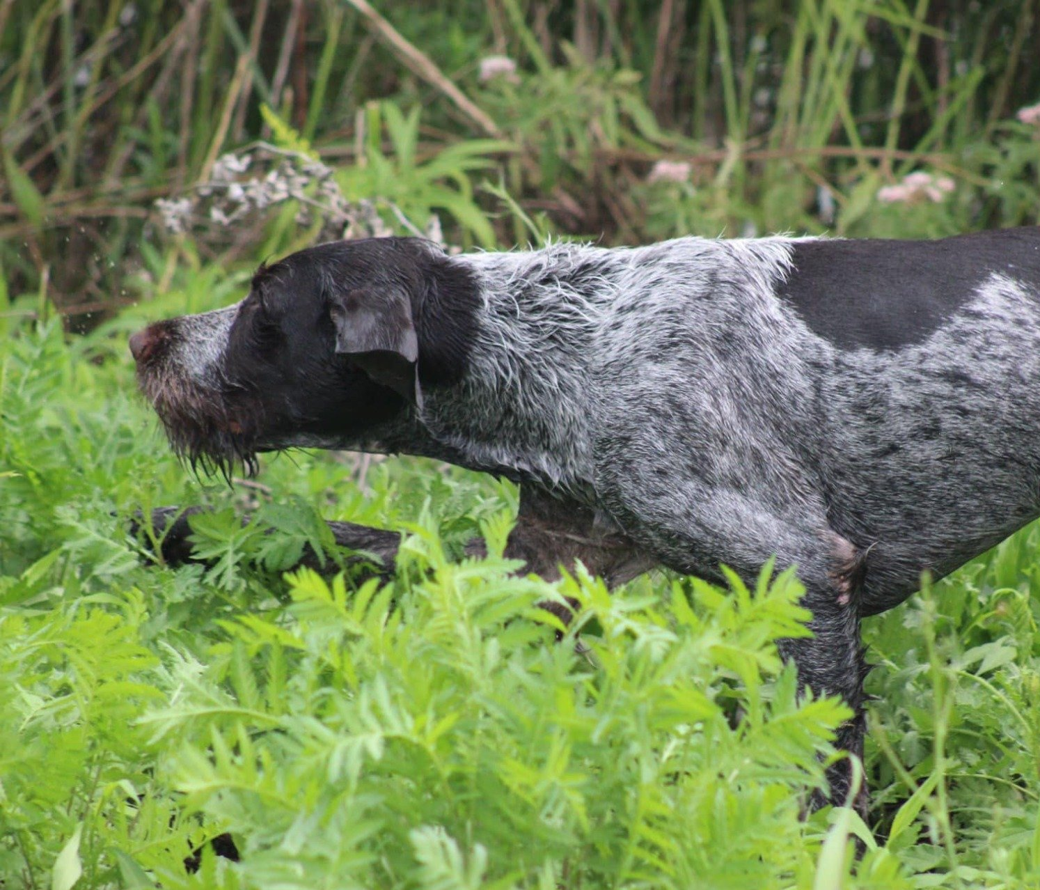 Der nächste in der Runde ist DD Bootsmann vom Vernicher Feld. Er ist inzwischen 7,5 Jahre (2015) alt, zu Hause wie auch auf der Jagd führt er das vierbeinige Rudel an. Er hat schnell gelernt mit Verstand zu jagen und sich nicht übermütig in jede Dickung zu schmeißen. Er führt an und die anderen folgen ihm.