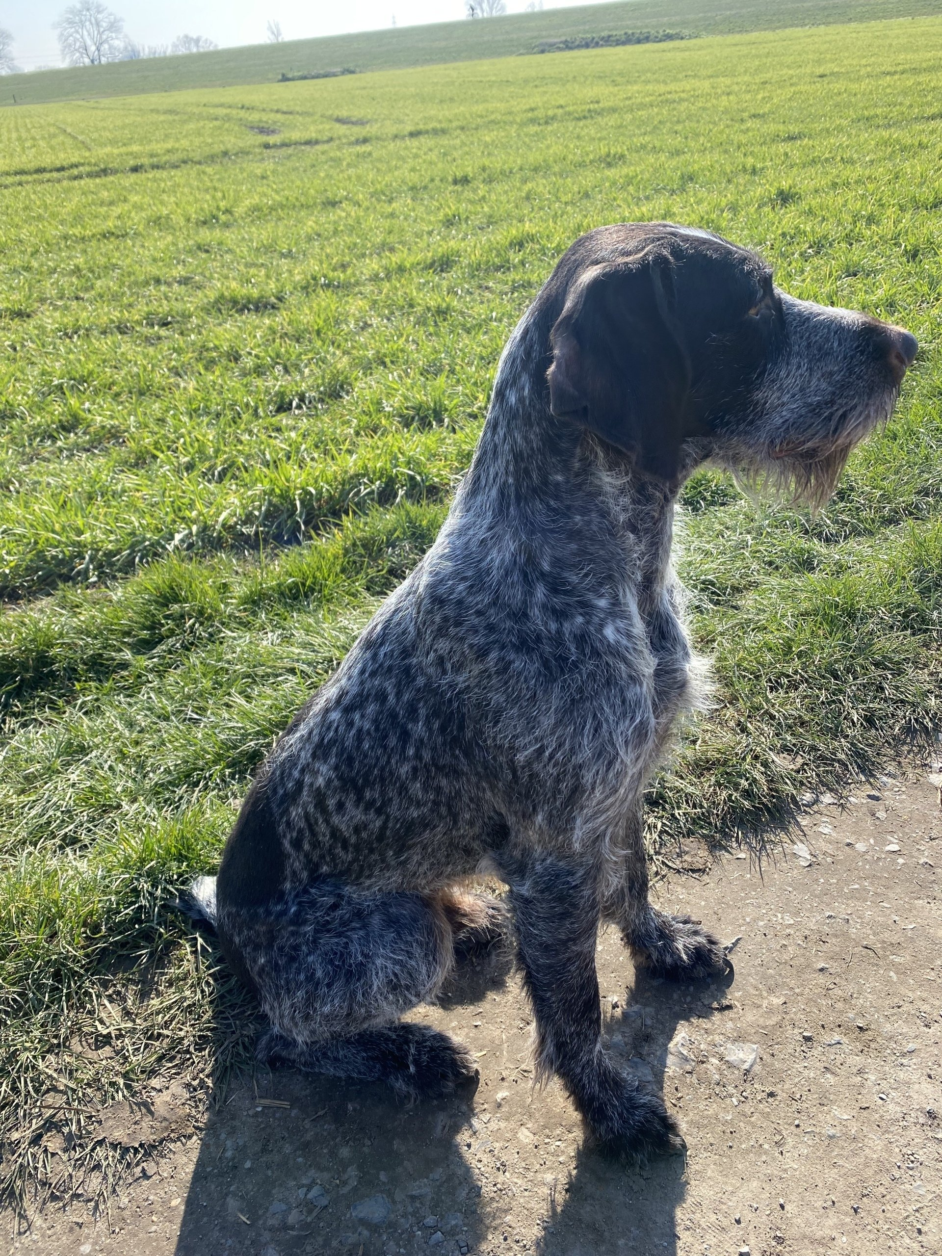 Zum guten Schluß zog nun eine hübsche DD-Dame bei uns ein. Centa vom Vogler (2020) wurde von ihrem Züchter bis zum Einzug bei uns ausgebildet und geführt. Sie hat sich bei uns gut eingelebt, hat uns zur letzten Jagd der Saison 2021/2022 begleitet, läuft mit wenn wir zum Wiesen absuchen ins Revier fahren und macht ihre Sache dort sehr ordentlich.