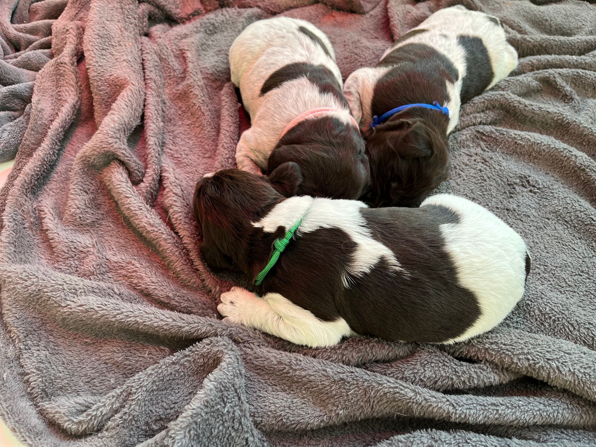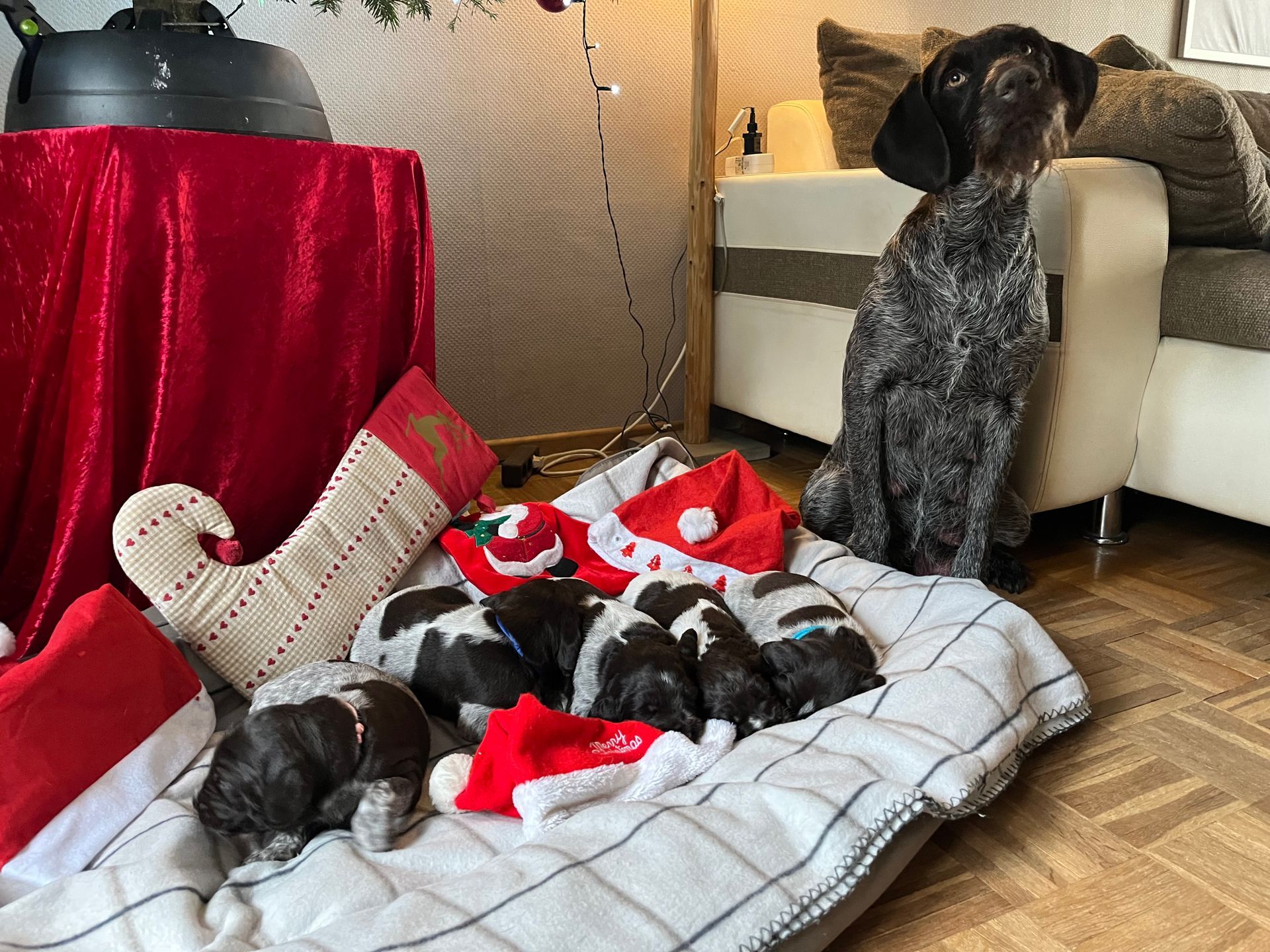 Am 03.12.2022 ist unser A-Wurf gefallen. 5 gesunde putzmuntere Welpen liegen nun in der Wurfkiste. 3 Rüden und 2 Hündinnen.